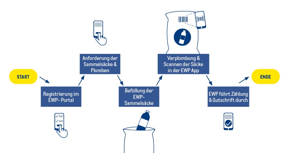 Eine Registrierung bei EWP ist nur dann notwendig, wenn Sie sich für die Rückgabe des Pfandes mittels Abholung durch die EWP oder einem Tarifpartner (Firma METRO) entscheiden. Wenn Sie unsere modernen Rückgabeautomaten im Abholmarkt benutzen, ist keine Registrierung bei der EWP notwendig, sondern es erfolgt die Pfandabrechnung direkt mit uns.