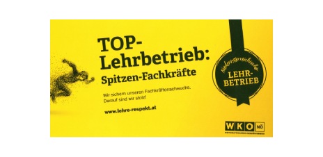 Vorbildliche Lehrbetriebe mit Ausbildungsstandort Wien werden jährlich mit dem Qualitätssiegel "TOP Lehrbetrieb" ausgezeichnet. Vergeben wird die begehrte Auszeichnung von den Sozialpartnern Wirtschaftskammer Wien, Industriellenvereinigung Wien, Gewerkschaftsbund und Arbeiterkammer Wien in Kooperation mit der Stadt Wien.